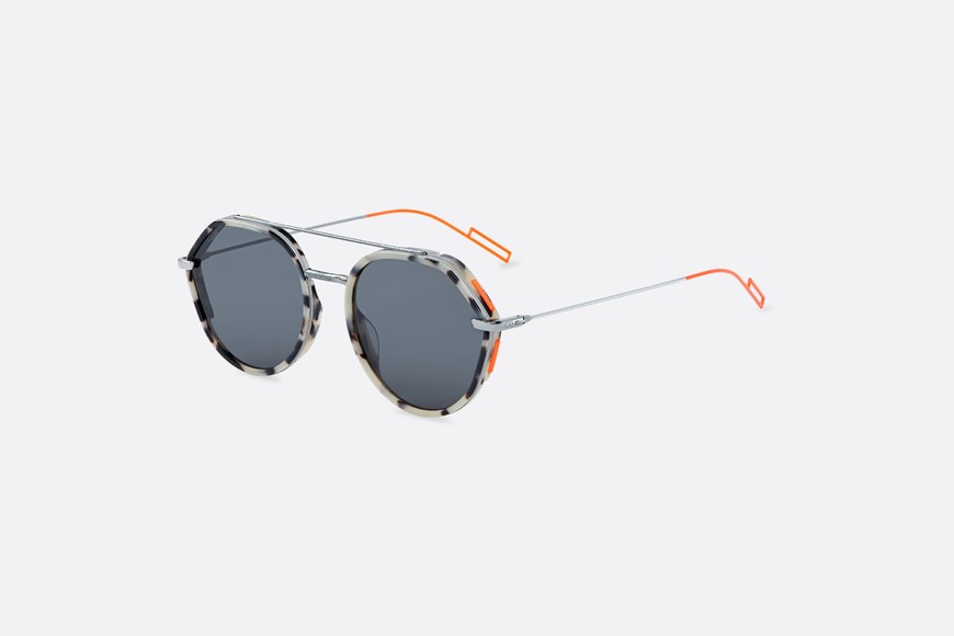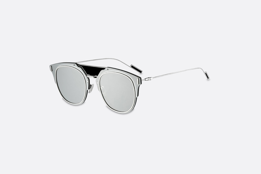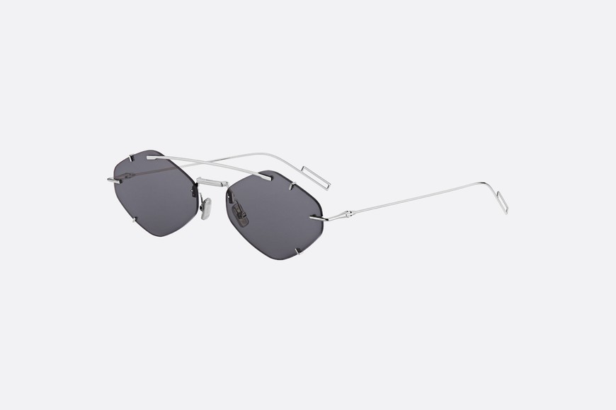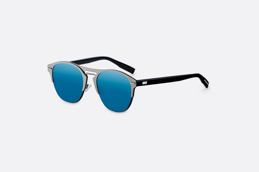 عدسات مسطحة عاكسة وإطار فضي متفاوت الدرجات رقيق للغاية، مزودة بنهايات ذراع النظارة المميزة لديور، وكعادة ديور هناك جسر مزدوج يتوسط التفاصيل والقطع المميز لتصميم النظارة.