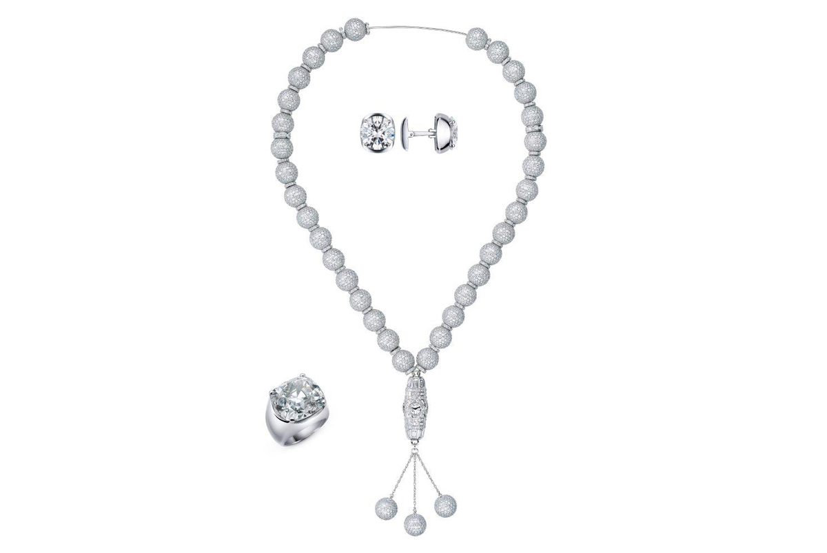 تحتوي القطع مسابح وساعات وخواتم ودبابيس على تفاصيل مصنوعة باليد وبحرفية بالغة وتنم عن فن حقيقي، جاء ذلك اعترافا بالرابطة التي صنعتها معوض مع العائلة العربية خلال زمن طويل.