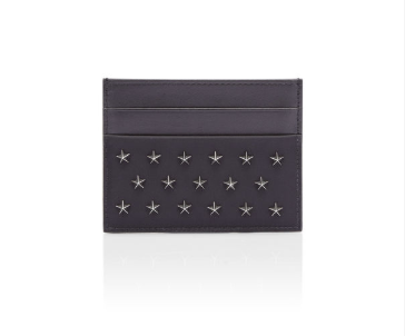 محفظة من الجلد الاسود مصممة خصيصا لبطاقات الائتمان. تحتوي على ثلاثة جيوب واسعة، وهي مزينة بنجوم من الحديد ما يضيق اليها لمسة عصرية. كما تحمل امضاء دار الازياء بطباعة ناعمة من الداخل.