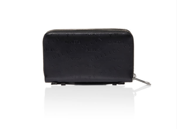 محفظة متوسطة الحجم مصممة من الجلد الاسود الايطالي. تحتوي على سحابين: الاول مخصص لاموالك وبطاقاتك والثاني لهاتفك الذكي. طبع على المحفظة امضاء فيليب بلين بالاحرف الكبيرة النافرة انما باللون الاسود للمحافظة على اناقتها.