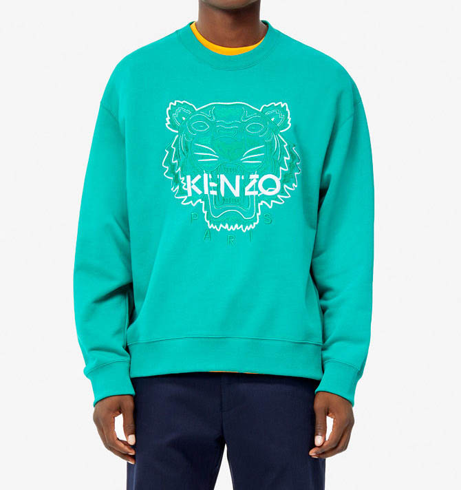 قميص من القطن الناعم، المتوفر باللونين الازرق الغامق والرمادي. نجحت كنزو باضافة لمسات انيقة وعصرية على هذا القميص عبر جودة القماش المستعمل في صناعته. هذا ويأتي النمر وسط القميص، ليضيف لمسات جريئة لاطلالة شرسة بعد ان كشر انيابه على علامة كنزو التجارية لتصبح فريسته.