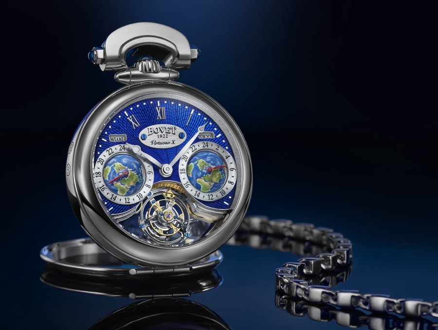 ألهم تفاني بوفيه 1822 تجاه الفنون الزخرفية وصناعة ساعات راقية لا تضاهى تطوير ساعة Virtuoso X Tourbillon الجديدة بالكامل، والتي تقتصر على 10 قطع فقط. تقدم ساعة Virtuoso X ثلاث مناطق زمنية متميزة، وتتميز بتوربيون طائر حاصل على براءة اختراع ويتمتع باحتياطي طاقة يدوم لعشرة أيام باستخدام برميل واحد فقط. وُضع إلى التوقيت المحلي في وسط المينا مع منطقتين زمنيتين ثانويتين، من اختيار هاوي الجمع، معروضتين بشكل متناغم على كلا الجانبين.