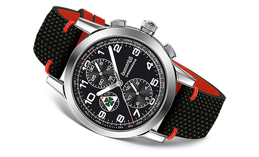 ساعة صممت بالشراكة مع ابرهارد اند كو، تنقل لك جاذبية سيارات الفا روميو بلونها الاحمر الشهير، هذا اللون دخل باناقة الى كستك الساعة من الداخل ليمنحها لمسات تشبه بالفعل السيارة المميزة.