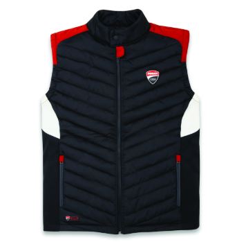 سترة من دون أكمام تناسب الخريف والربيع تمت صناعتها من النيلون والنيوبرين، زودت بسحاب مطاطي وتم تبطينها جيدا لكي لا تعيق الحركة بأي شكل محافظة في الوقت نفسه على المظهر الرياضي الجامح بتفاصيل حمراء صغيرة على اللون الأساسي الأزرق الداكن.