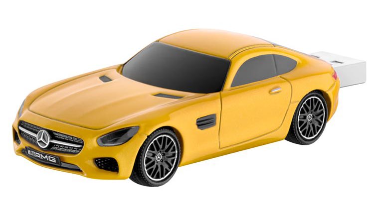 واحفظ بياناتك على USB سيارة مرسيدس بنز AMG GT، بقدرة اتساع تصل الى 16 جيجابايت، والمتوفرة باللونين الأصفر والأسود.