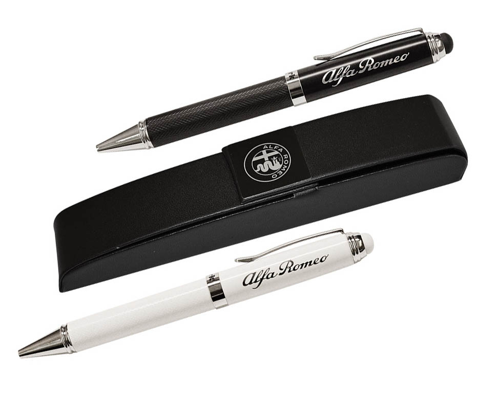 واكتب بقلم الفا روميو الفاخر والمتوفر باللونين الأبيض والأسود والذي يحمل امضاء الشركة بأحرف أنيقة، وما يميز هذا القلم امكانية استعماله للتحكم بشاشة الهاتف.