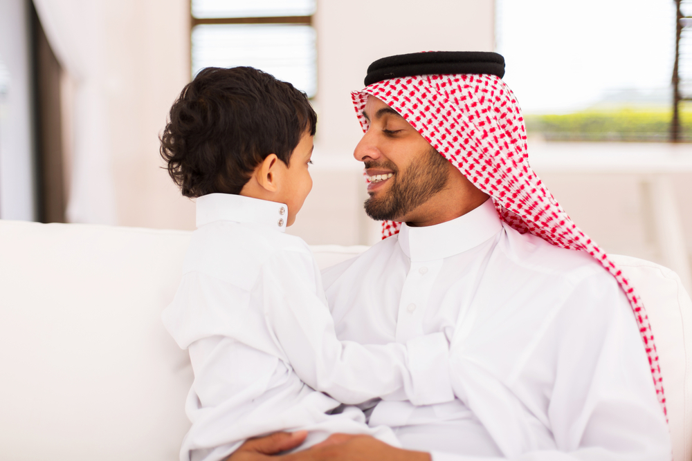 ان كنت تعيد مع عائلتك، يمكنك ان تنسق ملابسك مع ملابسهم لاضفاء جو من المرح الى العيد ولادخالهم الى تقاليد الفطر الجميلة. فما الاجمل من ان ترتدي انت وولدك الثوب العربي في الصورة العائلية؟