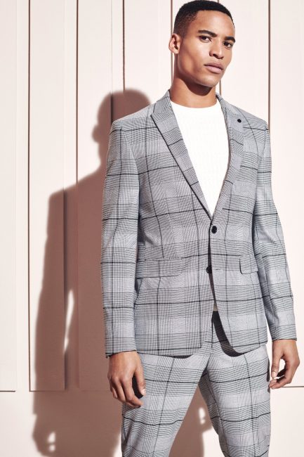 تمتاز هذه البدلة بالأنماط والخطوط التي تأتي بألوان متعددة! تأكد من إرتداء كنزة من لون واحد تحت البدلة أو يمكنك إرتداء الجاكيت لوحدها مع بنطلون أسود.