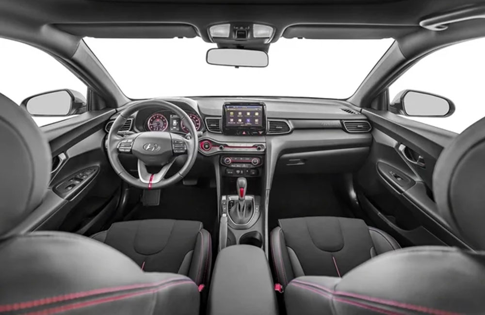 هذا وتأتي السيارة مع مصابيح LED نهارية وشاشة قياس 8 إنش لنظام المعلومات والترفيه مع أندرويد أوتو وآبل كاربلاي ومقود رياضي وزوائد سفلية للصدام وكاميرا للرؤية الخلفية وشاحن لاسلكي للهواتف الذكية وشاشة عرض رأسية وخدمات Blue Link المتصلة للشركة وسقف المنحدر الرياضي ونظام تنبيه للبقاء في الحارة ونظام تحضير إضاءة المصابيح الأمامية أوتوماتيكياً ونظام تنبيه السائق في حال تشتت انتباهه ونظام ABS ونظام EBD وناشر هواء سفلي ومخرجي عادم في المنتصف ونظام العرض على الزجاج الأمامي.