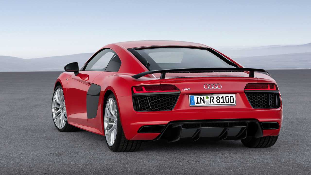 التغييرات أكثر وضوحاً في الخلفية، حيث تخلت R8 عن العادم شبه المنحرف واستبدلته بآخر بيضاوي كبير، كما أن الناشر الخلفي أعرض مقارنة بالسابق، في حين أن فتحات التهوية تمتد على غالبية الخلفية بإستثناء مساحة المصابيح.