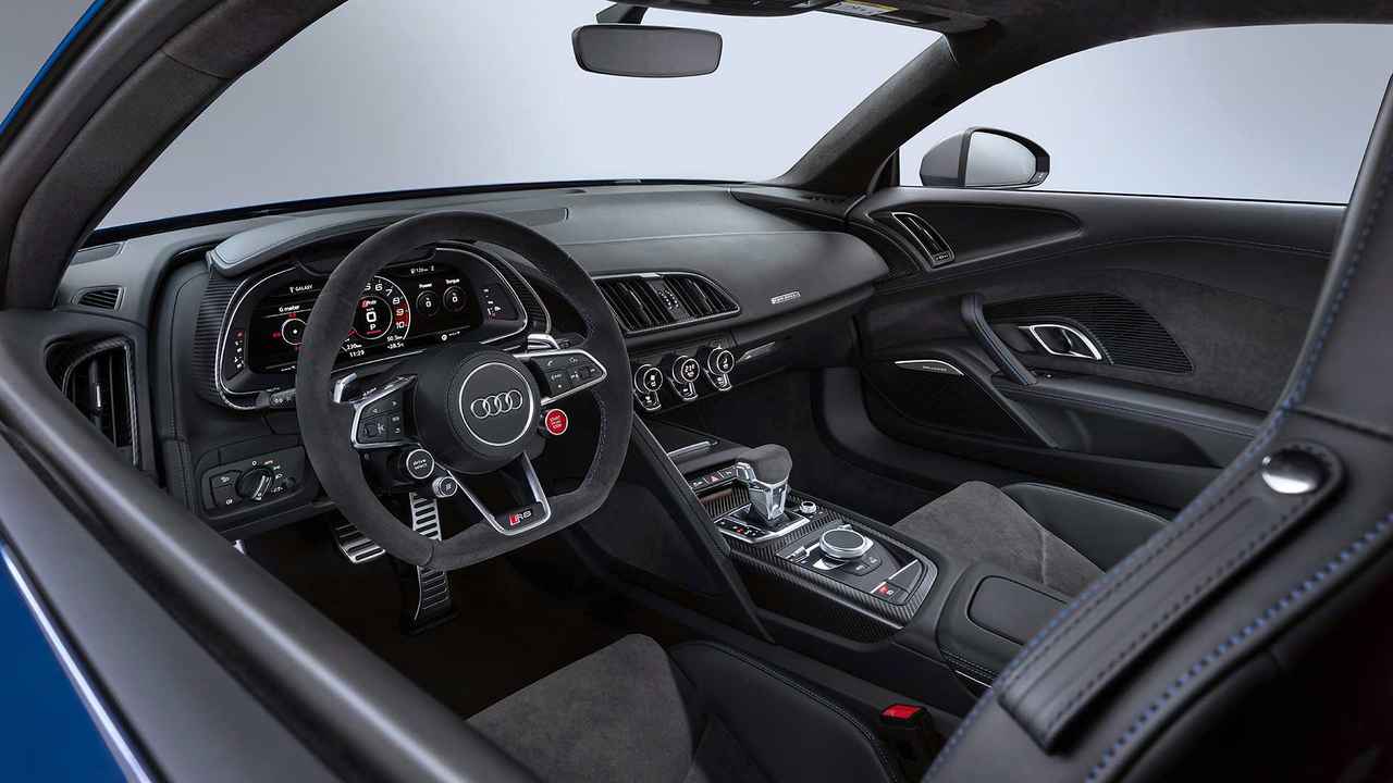 تتميز R8 الجديدة بمحرك تنفس طبيعي 5.2 لتر 10 سلندر قوة 570 حصان وعزم دوران 550 نيوتن متر، ما يتيح لها الانطلاق من 0-100 كم/س خلال 3.4 ثوان مع سرعة قصوى 325 كم/س، ما يعني ازدياد قوتها بمقدار 30 حصان وتسارعها بمقدار 0.1 ثانية، في حين أن نسخة بيرفورمانس تأتي بقوة 620 حصان بزيادة 9 حصان، ما يطلقها من 0-100 كم/س خلال 3.1 ثوان بسرعة قصوى 330 كم/س.