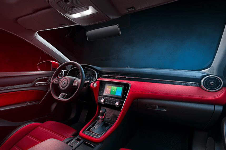 داخل المقصورة، أول ما لفت نظرنا في ام جي 6 هو تصميمها البسيط جذاب مع شاشة وسطية واضحة كبيرة بقياس 8 بوصة تدعم آبل كار بلاي، إضافة لوجود زر لتشغيل المحرك ودعم مكيف الهواء المزدوج الأوتوماتيكي، فضلاً عن شاشة عدادات رقمية مدمجة بين اثنين من العدادات التناظرية أمام السائق لتعطي طابع رياضي مميز يدمج بين العصري والكلاسيكي.
