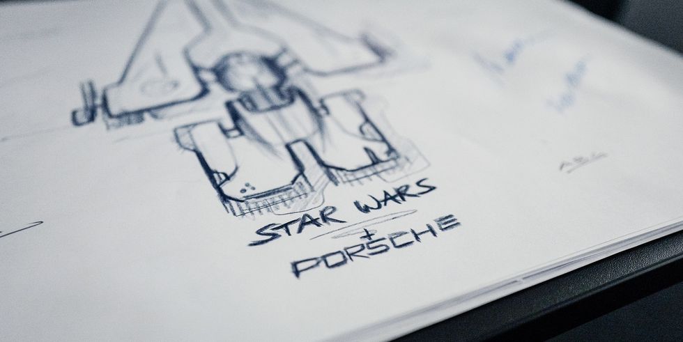 هذا وقد كشف المدير الإبداعي لشركة Lucasfilm، دوغ تشيانغ، عن المواصفات المطلوبة للسفينة الفضائية الخيالية المميزة، والتي تتضمن ما بين اثنين إلى أربعة محركات، إضافة إلى اثنين من الطيارين و3 من أفراد الطاقم على الأقل، مع وجود مدخل أمامي كبير وباب ضخم لمستودع الأمتعة بالخلف، حيث يجب أن تكون بعد ذلك مستعدة لمجابهة الإمبراطورية، وربما الكون بأكمله، على أن يتم استعراض السفينة في وقت العرض الأول للفيلم يوم 20 ديسمبر في الولايات المتحدة، تزامناً مع بدء وصول بورشه تايكان الكهربائية لمشتريها.