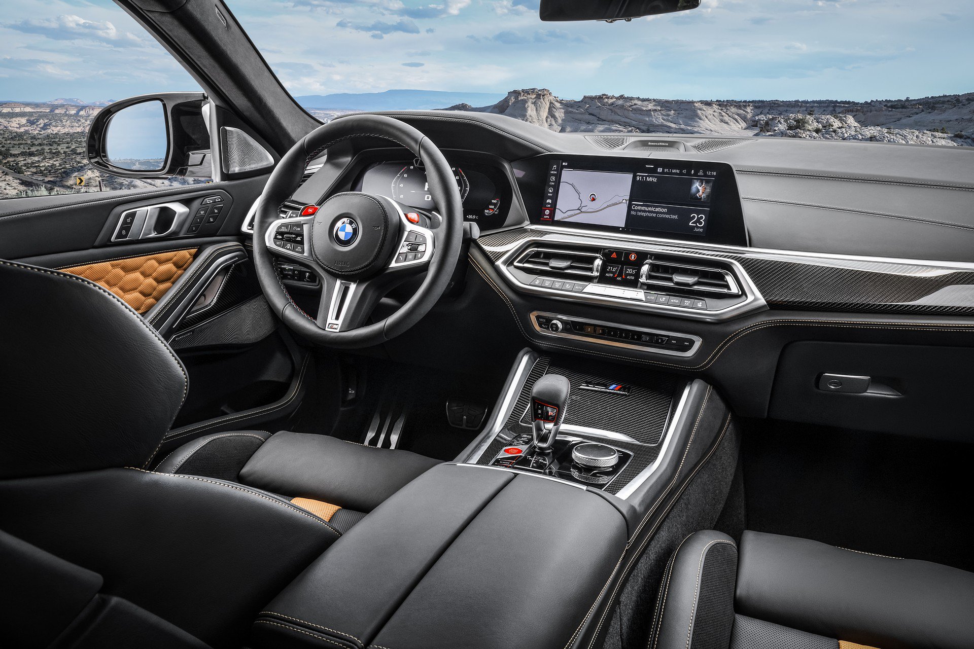 تستمر المقصورة كما هي في أغلب أرجائها بموديلات X6 وX5 القياسية، ولكن سيجد الملاك مجموعة كبيرة من اللمسات الخاصة التي تتضمن مقود M مكسو بالجلد مع عتبات أبواب جانبية مضيئة ومقاعد رياضية متعددة الوظائف، إضافة لإضاءة خاصة لاسم الطراز وزخارف مميزة من الألمنيوم أو ألياف الكربون مع مقبض ناقل فريد من نوعه بجانب شعار M مميز وتطريز خاص.