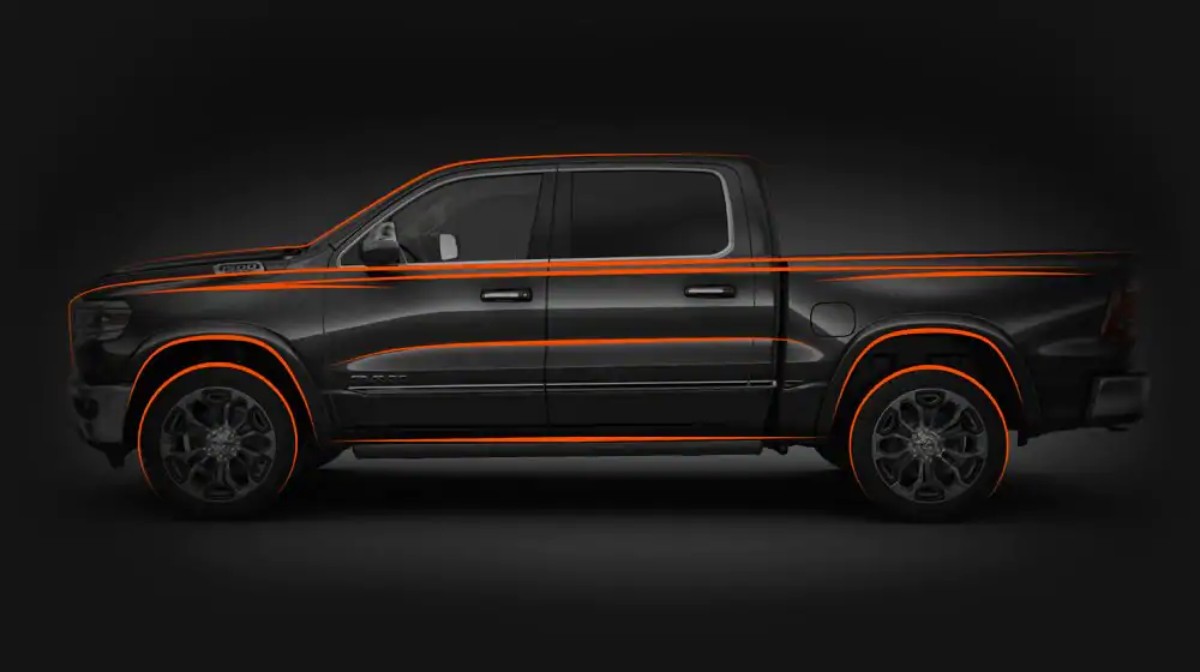 تقوم خارجية رام 1500 ذات الخطوط المنحوتة بتزويدك بأداء ديناميكي رائع عبر السماح للهواء بالتدفق تجاه الصندوق الخلفي، ولمزيد من الكفاءة على السرعات العالية تمتلك البيك اب الجديدة تقنية تٌعرف باسم سد الهواء القابل للفتح أو (Retractable Air Dam) وهو عبارة عن فاصل أمامي سفلي يفتح أوتوماتيكياً على السرعات العالية، مما يزيد من سهولة القيادة ويوفر من صرفية بنزينك.