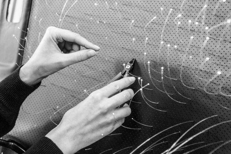 ما تنظر إليه في الواقع هو كسوة جلدية فاخرة تم ثقبها مراراً مع تمرير خيوط ألياف ضوئية عبر هذه الثقوب، كي يتم لاحقاً وصل هذا النظام بالطاقة لترى أمامك ما يزيد عن 2000 نجمة قد تمثل مجرات أو أبراج فلكية مختلفة حسب ما تفضل، فالصانعة البريطانية قادرة على تخصيص شكل النجوم وعددها وترتيبها حسب ما تفضل كي تكون دليلاً على مظهر النجوم بالسماء في ليلة معينة، حتى يتحول سقف سيارتك الفاخرة إلى مظهر جمالي أخاذ يذكرك بأي ذكرى سعيدة تختارها كي تبتسم في استرخاء تام.