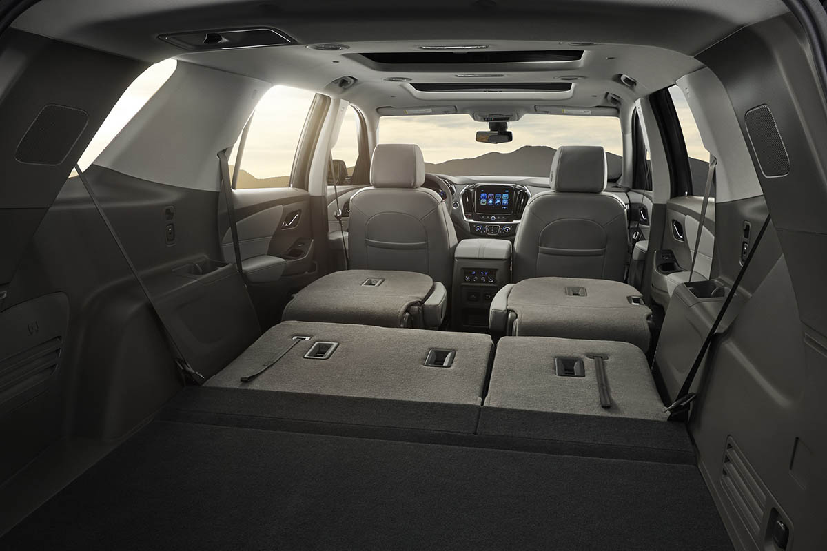 تعد ترافرس 2018 المعاد تصميمها من الألف إلى الياء، نسخة مجددة من هذه السيارة العريقة التي كانت جزءاً من عائلة شفروليه لمدة عشر سنوات تقريباً. كما تمتاز هذه السيارة التي تأتي بحجم أكبر من النموذج الذي تحل مكانه، بقاعدة عجلات أطول، لتوفر مساحة إضافية في المقصورة. ورغم استمرار تصنيفها كسيارة دفع رباعي متوسطة الحجم، إلا أنها توفر مقاعد مريحة لما يصل إلى ثمانية ركاب، وتتميز بحيز أرجل رحب لركاب الصف الثالث تبلغ (856 ملم) يعد الأفضل على الإطلاق في خيارات الصف الثالث مقارنة بالسيارات الأخرى ضمن هذه الفئة.