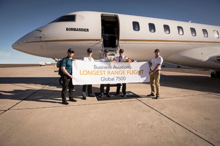من قال ان الارقام القياسية تقتصر على السيارات؟ أعلنت بومباردييه رسمياً بأن طائرتها الجديدة للأعمال جلوبال 7500 التي دخلت الخدمة في نهاية 2018، استطاعت تحقيق رقم قياسي لأطول رحلة طيران في التاريخ.