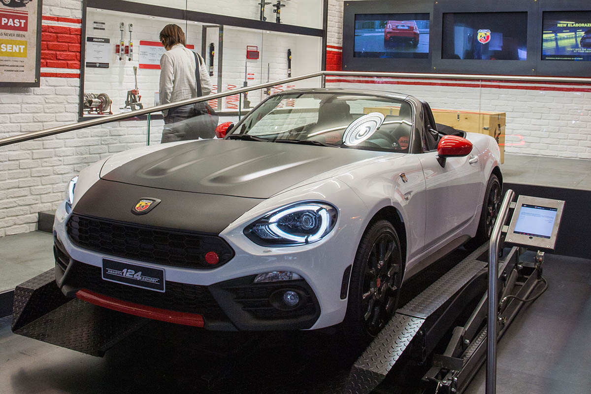 من جهة اخرى، تتركز الأضواء على سيارة فيات أبارث 124 GT، وهي إصدار خاص يرفع معدل الأدرينالين، وقام بتطويرها فريق سباقات أبارث، مع إظهارها بشخصيتين - كوبيه أنيقة ورودستر جريئة وديناميكية للحصول على متعة القيادة الحقيقية.