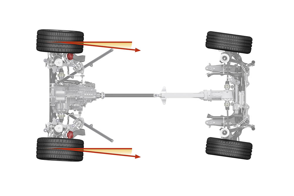 في السرعات العالية: في هذه الحال، يتم توجيه العجلات الخلفية في نفس اتجاه العجلات الأمامية، مما يجعل السيارة تنحرف تدريجياً عن مسارها، وهو ما يجعل قيادتها أكثر سلاسة وأكثر ثباتاً.