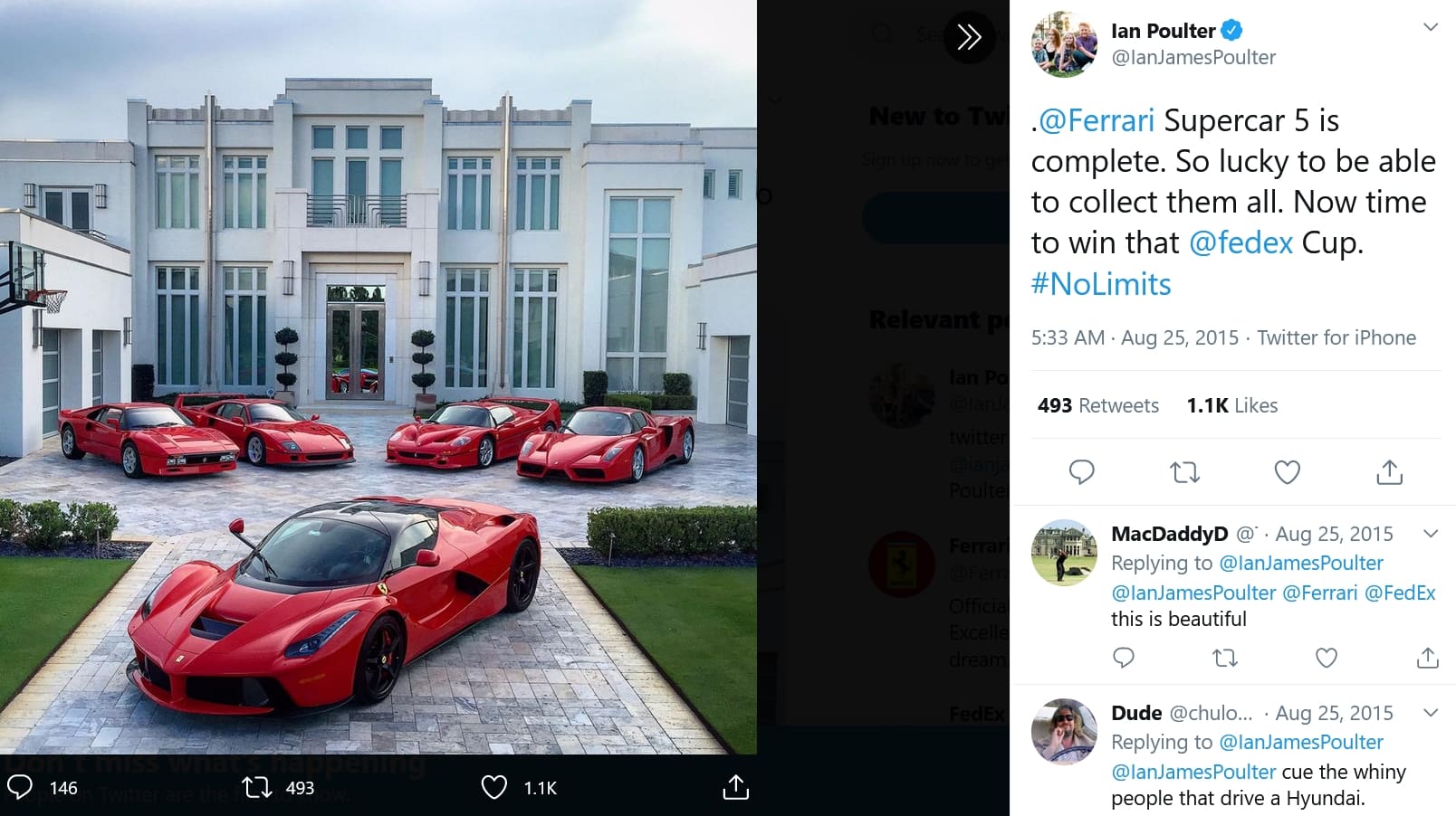 أما لاعب الغولف المحترف إيان بولتر، فوجد طريقة للتسلية أبكتنا جميعاً عندما ركن سيارة فيراري لافيراري أبيرتا التي يقدر سعرها بـ 4.5 مليون دولار أمريكي وتصل قوتها إلى 950 حصان، ليستخدمها كعائق لاستعراض مهاراته في الغولف عبر تمرير كرة الكرة عبر نوافذها!