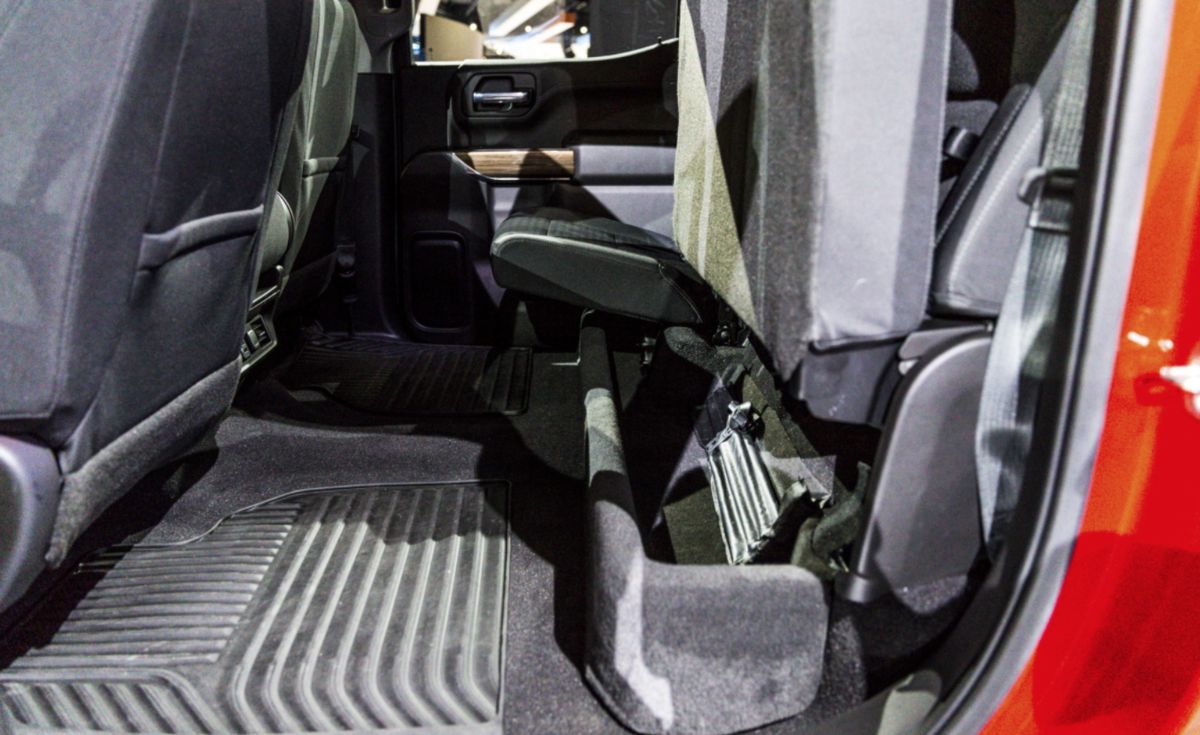 بجانب ذلك، يوجد أسفل المقاعد الخلفية أيضاً منطقة تخزين نحيفة وطويلة تسمح لك بوضع أشياء مثل الأنابيب أو المضارب أو حتى الرسومات واللوحات الملفوفة داخلها بأمان تام ومن دون أن تسبب أي مشكلة للركاب، كما سترى بالأمام أن هناك 3 مقاعد في أحد نسخ سلفرادو حسب اختيارك، حيث يمكنك أيضاً رفع الجزء السفلي للمقعد الوسطي به أمام الكونسول لتجد مساحة تخزين أخرى كبيرة تكفي حتى أكبر أكياس البقالة ومختلف الملفات الخاصة بك، كما أنها تناسب أيضاً حقائب يد السيدات، وتتوفر المساحة ذاتها حتى في حالة اختيار النسخة ذات اثنين من المقاعد الأمامية فقط بالكونسول الوسطي على يمينك.