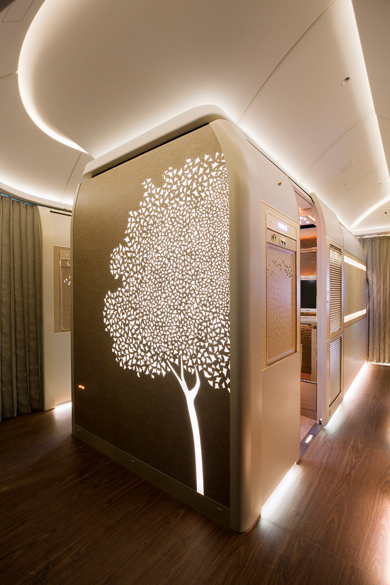تتاح 6 أجنحة في كل طائرة بوينج 777 بتصميم S-Class، جميعها مغلقة تماماً كي تحافظ على خصوصية ركابها، حيث كل جناح مساحته 3.716 متر مربع بلا نافذة واقعية حيث استبدلها طيران الإمارات بأخرى افتراضية.