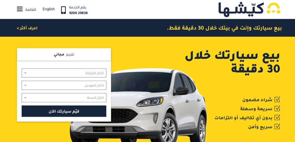 تتبنى كيّشها محرك التّقنية المتطور، لتربط شبكة تجار السّيارات على مستوى العالم، ومواقع فحص السّيارات، متيحةً في المجال للمستخدمين في مختلف أنحاء المملكة العربية السّعودية لبيع سيارتهم المستخدمة في غضون 30 دقيقة بغض النظر عن عمرها أو حالتها.