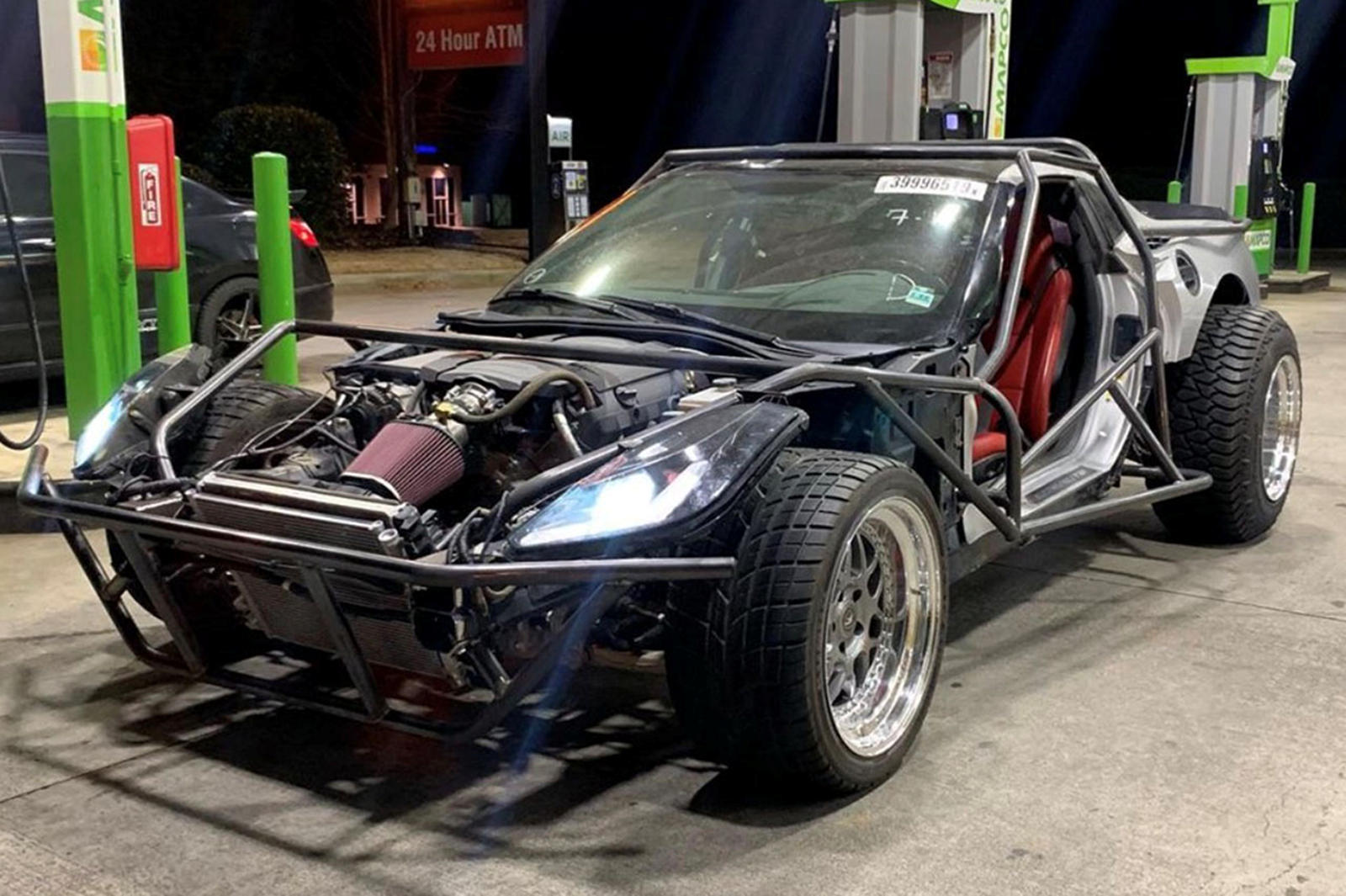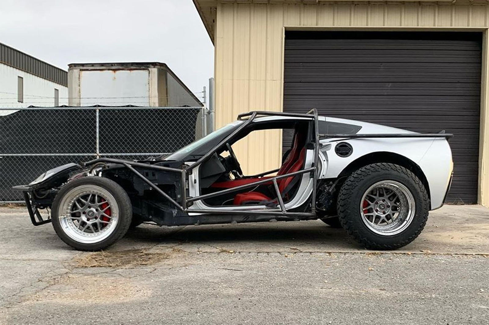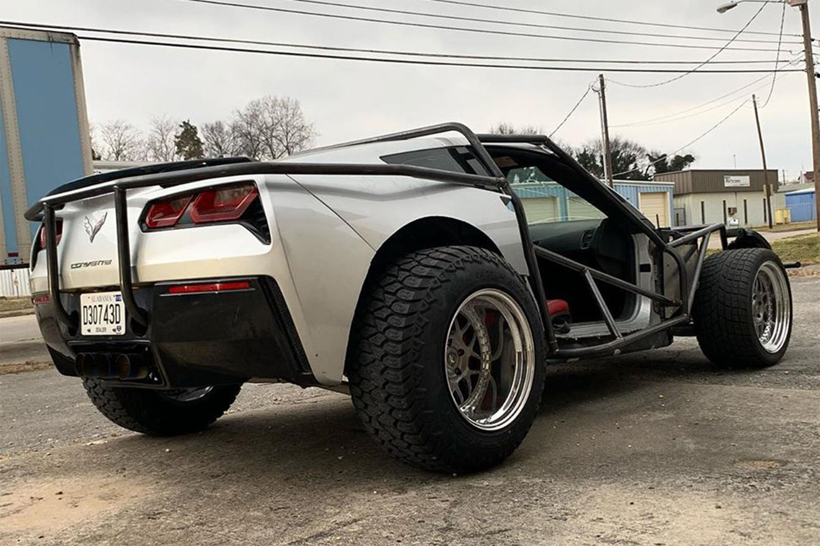 تم تعديل السيارة من قبل شخص يدعى مايك ماهدي بولاية ألاباما الأمريكية كي تتحول من C7 كوبيه إلى سيارة ذات تصميم مستوحى من مركبات فيلم ماد ماكس Mad Max، وذلك عبر إزالة أغلب ألواح الهيكل المصنوع من ألياف الزجاج مع تثبيت قفص منع انقلاب خارجي ضخم.