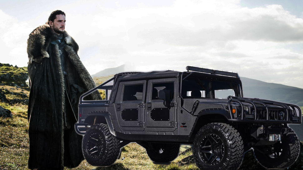 جون سنو هو أصغر الشباب في المسلسل وكان في صغره غير محبوب فإختار أن يحمي المملكة من المخلوقات المحيطة بها "الوايت ووكرز" فأصبح يقضي معظم اوقاته في الأماكن الوعرة والمناطق الثلجية. لذلك، لو كان المسلسل في زمننا هذا، على الأغلب أن جون سنو سيقود سيارة جبارة مثل همر H1.