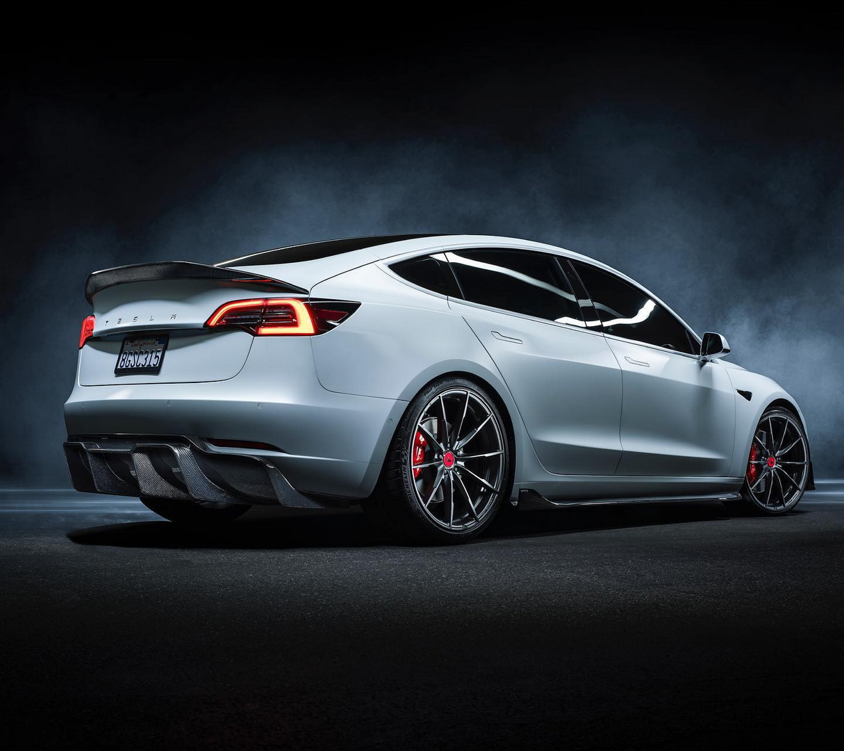 مقارنة بسيارات البنزين المعدلة، لا شيء تغير فعلياً، وهو مؤشر جيد على أن عشق المحركات لن يتبدل عند الانتقال إلى السيارات الكهربائية، حيث نجد موديل 3 قد أضيف إلى هيكلها ألياف كربون بالمشتت الأمامي والعتبات الجانبية والناشر الخلفي مع إضافة جناح بارز يؤكد على هويتها المعدلة، كما أن سيارة تسلا باتت تستند على عجلات مصقولة رياضية.