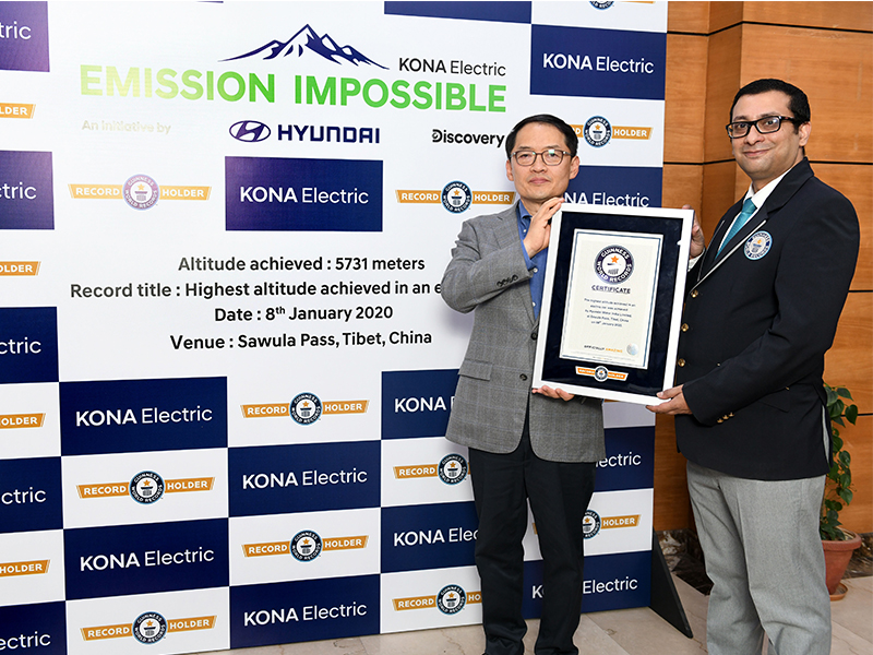 نعم هذا صحيح، فالرقم القياسي الذي حطمته هيونداي كونا الكهربائية كان الرقم القياسي لأعلى ارتفاع تم الوصول له داخل سيارة كهربائية، حيث تمكنت كونا من الوصول لإرتفاع 5,731 متر عن سطح الأرض في منطقة التبت في الصين.
