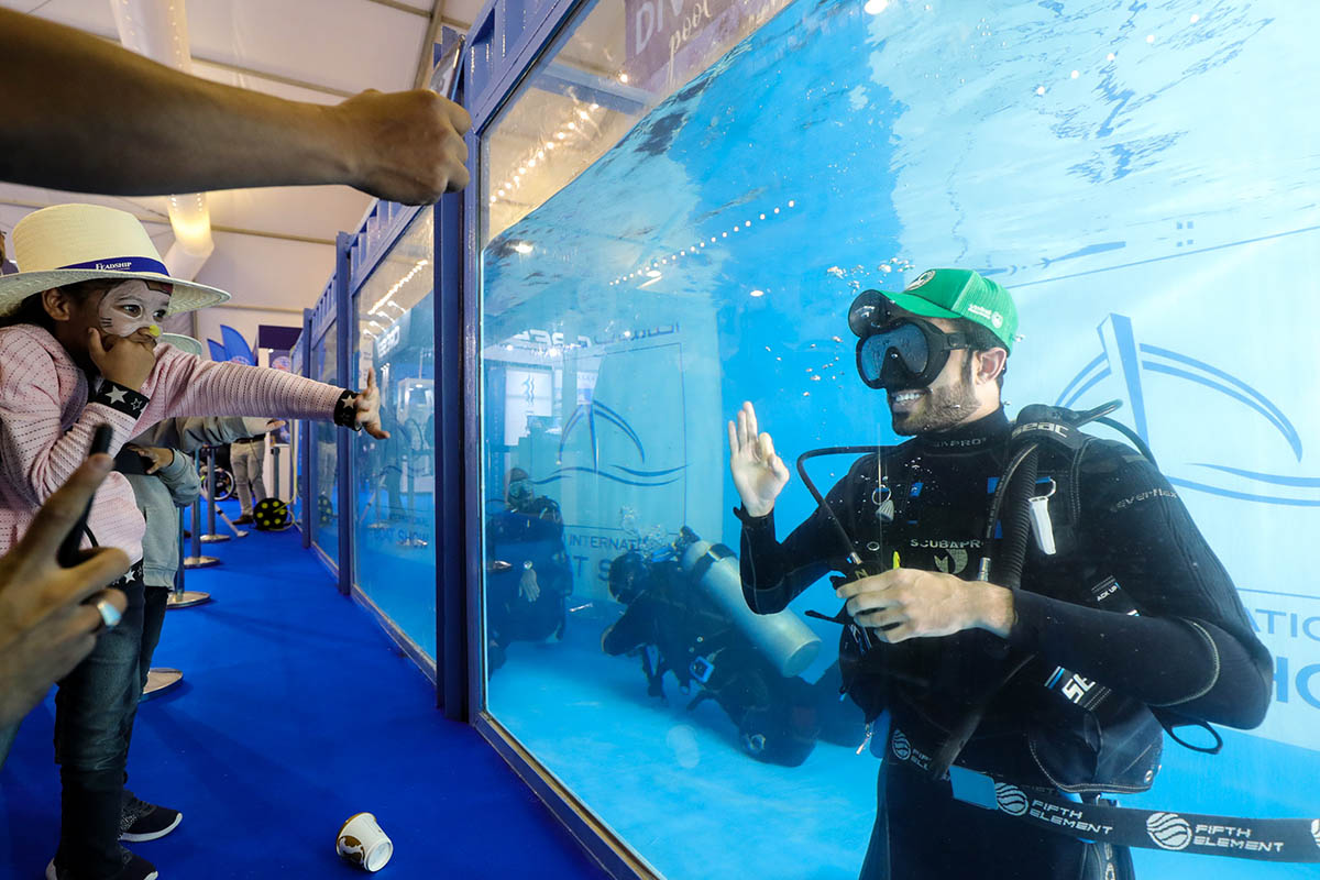 وشكّل المعرض هذا الأسبوع محور الرياضات المائية بكافة أنواعها حيث خاض معرض الشرق الأوسط وشمال أفريقيا للغوص في أعماق هذه الرياضة وتنوّعت الفعاليات الجارية إذ شملت تعليم التصوير تحت الماء والغوص والنقاشات التفاعلية حول مختلف الأنشطة البحرية.