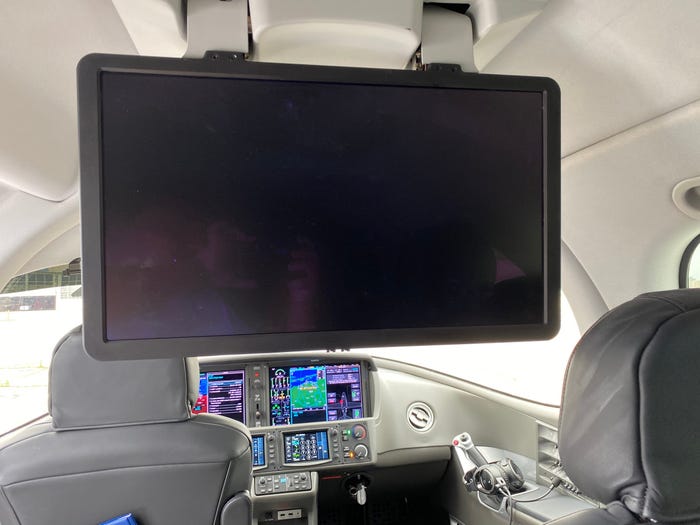 5- تحتوي على شاشة نظام ترفيهي ضخمة تنخفض من السقف ويمكن توصيلها بجهاز اللابتوب الخاص بك لمشاهدة الأفلام أثناء الطيران.