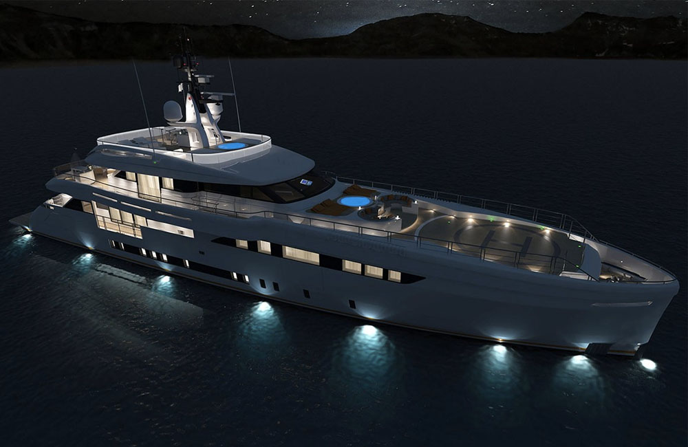اليخت هذا وفي فترة الليل يُضاء بطريقة رائعة حتى تتمكن السفن الأخرى من التنبه له. أما في حال أراد المالك استقبال قارب صغير في الناحية الخلفية، فهذا الأمر ممكن بحيث يوجد مكان أشبه بالمرآب.
