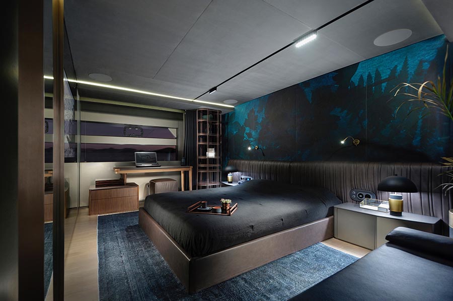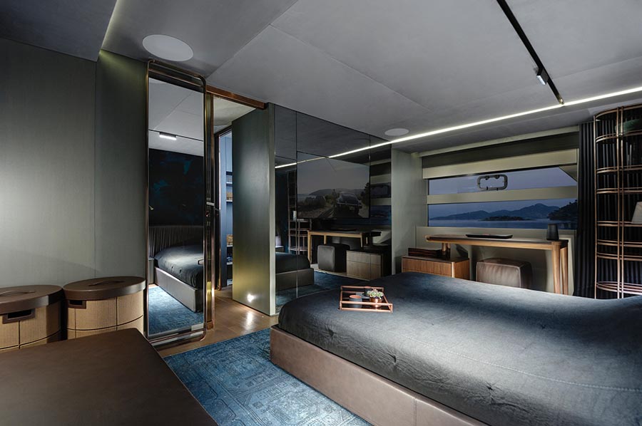 يأتي سوبريخت مازو 82 - الذي يبلغ طوله 24.5 متر - بمقصورة خاصة فريدة من نوعها من المصمم التركي تانجو أوزلغين (Tanju Özelgin)، والذي يهدف لخلق بيئة داخلية توحي للمالك وضيوفه أنهم داخل فندق دافئ أو بيت صغير جذاب وراقي.