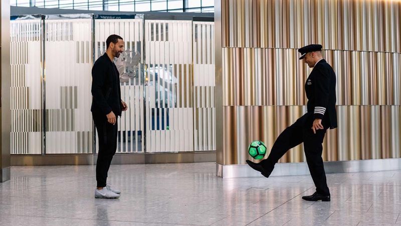 ويظهر في الصور المرفقة فرديناند وسط جولة وديّة من كرة القدم مع ريك باسنت، القبطان في الخطوط الجوية البريطانية، وذلك قبل انطلاق رحلتهما إلى دبي.